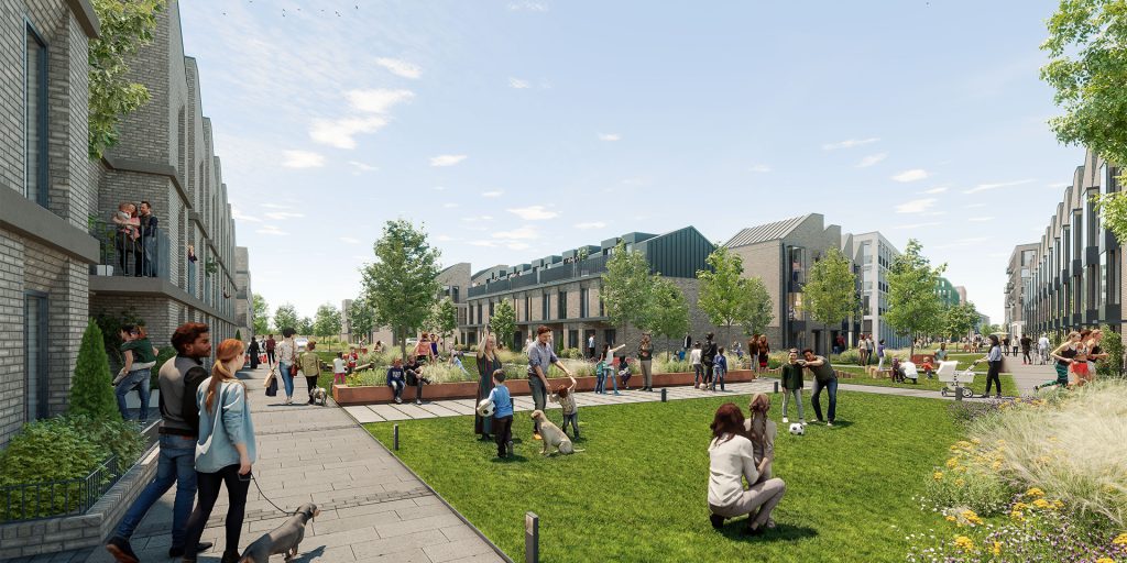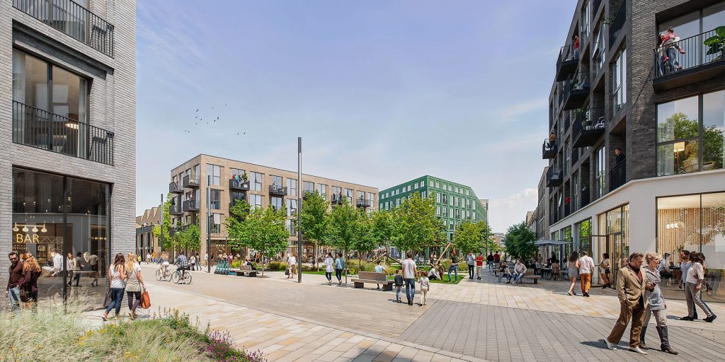 Over the next 15 years, this former industrial site will be transformed into a community of 1,600 low carbon homes, purposefully designed for people from all walks of life. Borough Yard will be connected by biodiverse green spaces and squares, streets focused on people rather than cars, a primary school, amenities such as offices, shops, cafes, nursery and care services, a hotel, and a mobility hub providing parking and parcel drop-off services.