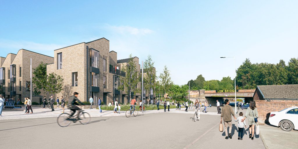 This new sustainable neighbourhood benefits from a unique setting within the historic walls of the former railway and gasworks yards; and running along it’s length is the currently derelict Dock Branch South railway line, which is being transformed into a new public park.